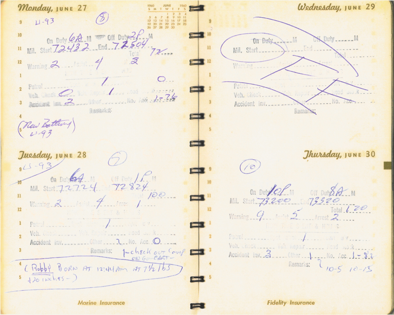 He was working the day I was born. He was back working after only one day off, writing 9 warnings, 5 tickets, and making 2 arrests.