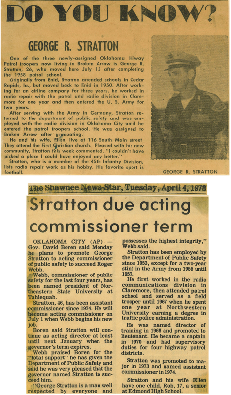 When Roger Webb left OHP, Governor David Boren assigned the post of Commissioner to my father. He was now the only Trooper in the history of the Oklahoma Highway Patrol to go from Dispatcher in '52 to Commissioner in '78. The top article is from his first assignment as a trooper. The article to the left below was his final assignment.